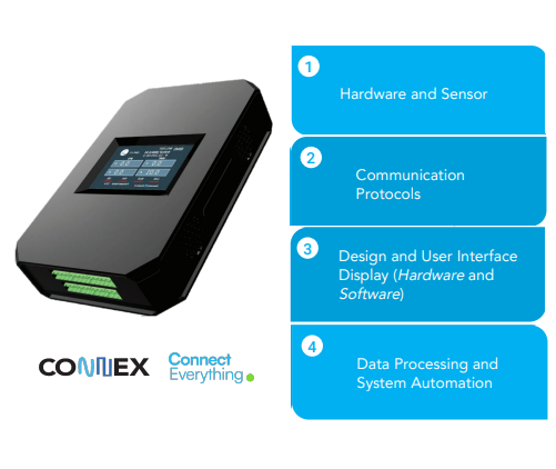 Our IoT platform (CONNEX) provides tailored solutions, adaptable to client requirements and conditions, employing a user-friendly 'plug-and-play' approach, offering customization options across four key components.Telecommunication Infrastructure