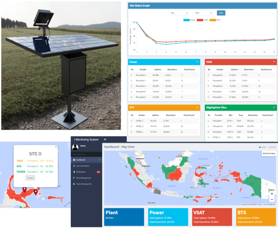Independent Monitoring System (IMS) is a monitoring system that is reliable, independent, can reach remote areas, compatible with all brands and can provide information about the surrounding environment. IMS utilizes solar power as a power source so that it can be placed in areas that do not even have electricity.